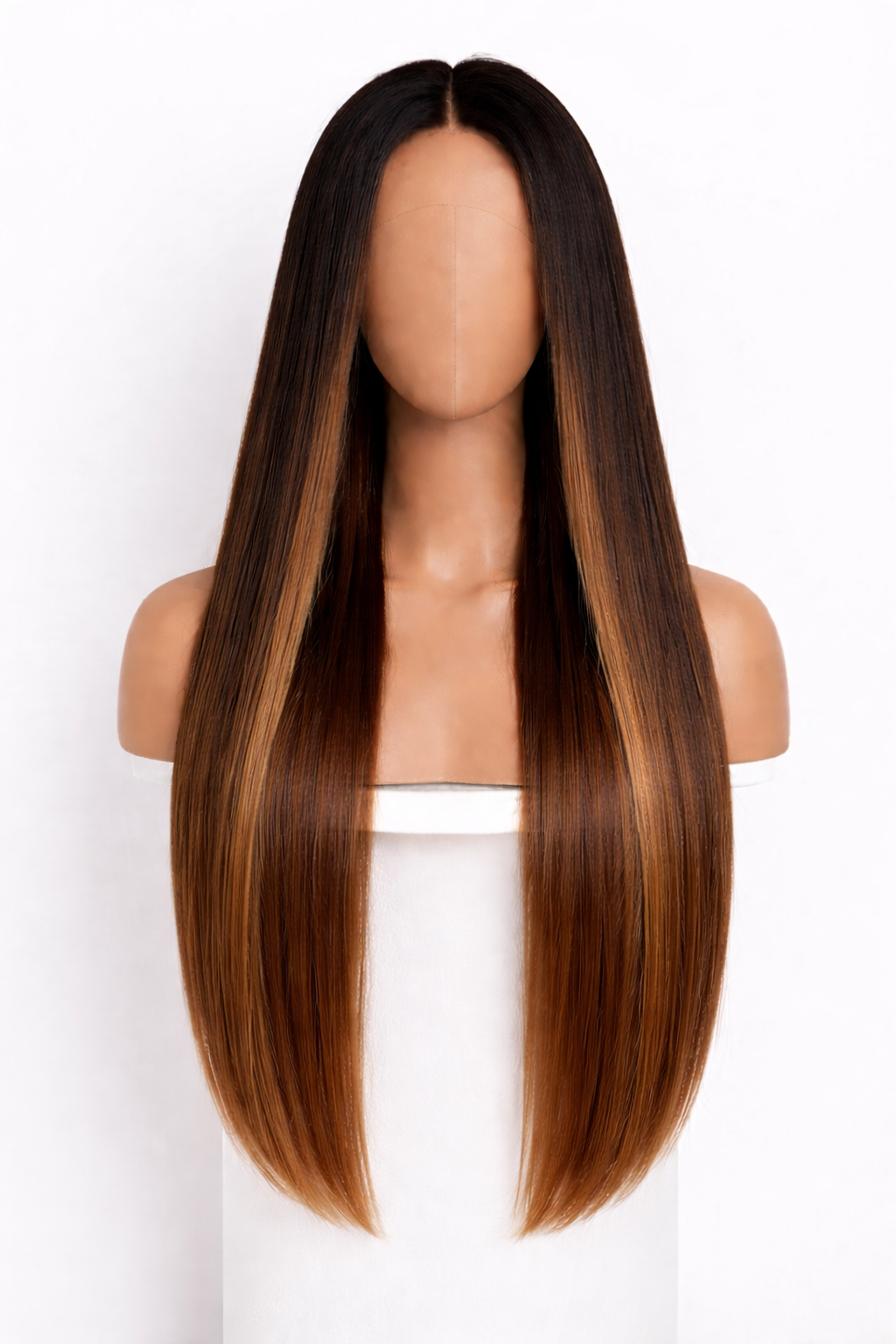 Create a naturally blended look with this elegant long straight wig in #T1B/6. Featuring deep natural black roots that gradually transition into warm chestnut brown tones, this color combination adds soft dimension and realism.